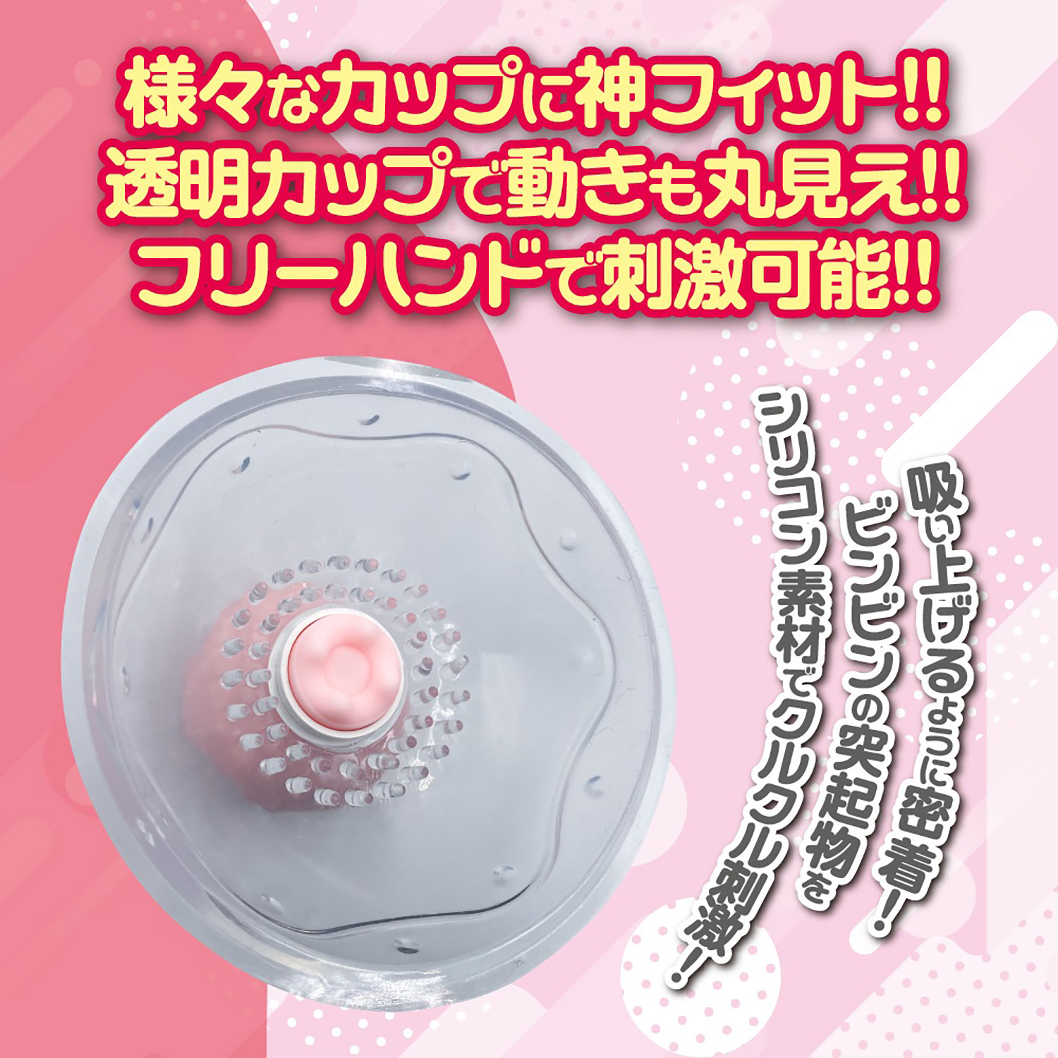 ちくイキおっぱいドームローター≪吸い上げるように密着!おっぱいに多彩な快感を…♪≫乳首ローター:ちくイキおっぱいドームローター透明なカップがしっかりとフィットし、動きも一目で確認できる仕様となっております。 付属の3種類のシリコンアタッチメント(ブラシタイプ、イボタイプ、ヒダタイプ)は、それぞれ異なる刺激を提供し、お好みに応じて多彩な感触をお楽しみいただけます。 本製品は片方のバストに特化した設計で、回転ローター単体でもご使用が可能です。 さらに、USB充電式のハイパワーモデルのため、手軽かつパワフルにご利用いただけます。 ちくイキおっぱいドームローターの詳細情報■付属品: 透明カップ、アタッチメント3種、USBケーブル この商品は充電式でUSBケーブル(コード)は付属しておりますが、家庭用コンセントに差し込むアダプターは付属しておりません。アダプターをお持ちでない方はご一緒にご注文頂くと充電がすぐに出来ます。 カートに入れる前に『追加オプション』の【USB充電アダプター】を選択して下さい。