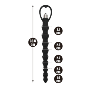電動アナルサンダーボルト1100%シリコン素材で覆われた電動アナルビーズ。 良質なシリコンで挿入時の違和感を軽減し、スムーズに挿入することが出来ます。 根元の部分のボタンを押すと強烈な震動が始まります。先端部まで振動がきちんと伝わりますよ。 リング状の持ち手がついているので出し入れしやすいです。 ■本体サイズ:33.5cm×最大径3.1cm(最少径1.9cm)