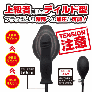 ハイテンションポンプ(ディルド型)通常は4cmから、最大7cmまで膨張するディルド型のアナルポンプです。 挿入してポンプで空気を送り込むだけで簡単に拡張が出来ます。アナルにもヴァギナにもお使い頂けます。 プラグタイプと違って長さがありますので、奥の方を圧迫したい方にピッタリ☆ ディルド部分は医療用のシリコンゴムを使用しているので安心! ハイテンションポンプ(ディルド)の詳細情報■ノーマル時サイズ:全長15.0cm 最大径4.0cm